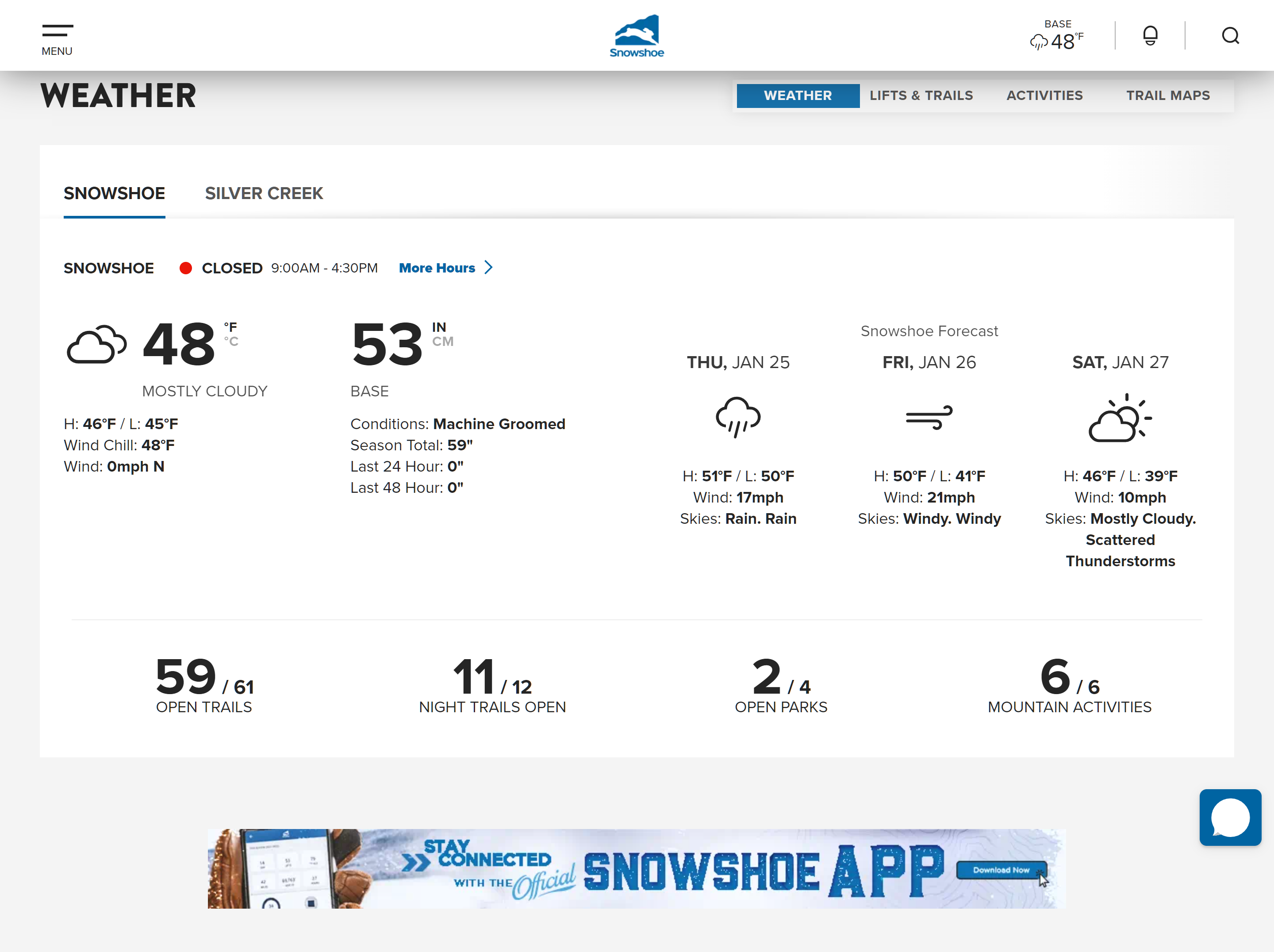Background: ski resorts communicate information about weather, snow conditions, lift operations, trail statuses, and available activities in real-time. These factors drive resort visitation (eg fresh snow) and are commonly grouped together on a “mountain report” webpage. Given the importance of conditions to skiers and snowboarders, mountain report pages are the first or second most visited pages during operational seasons.